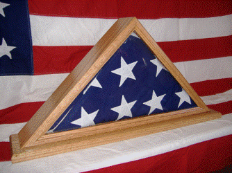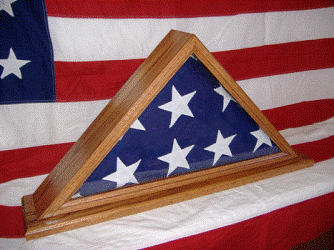 Attractive Oak memorial case for folded casket size burial flags. (5' x 9 1/2')